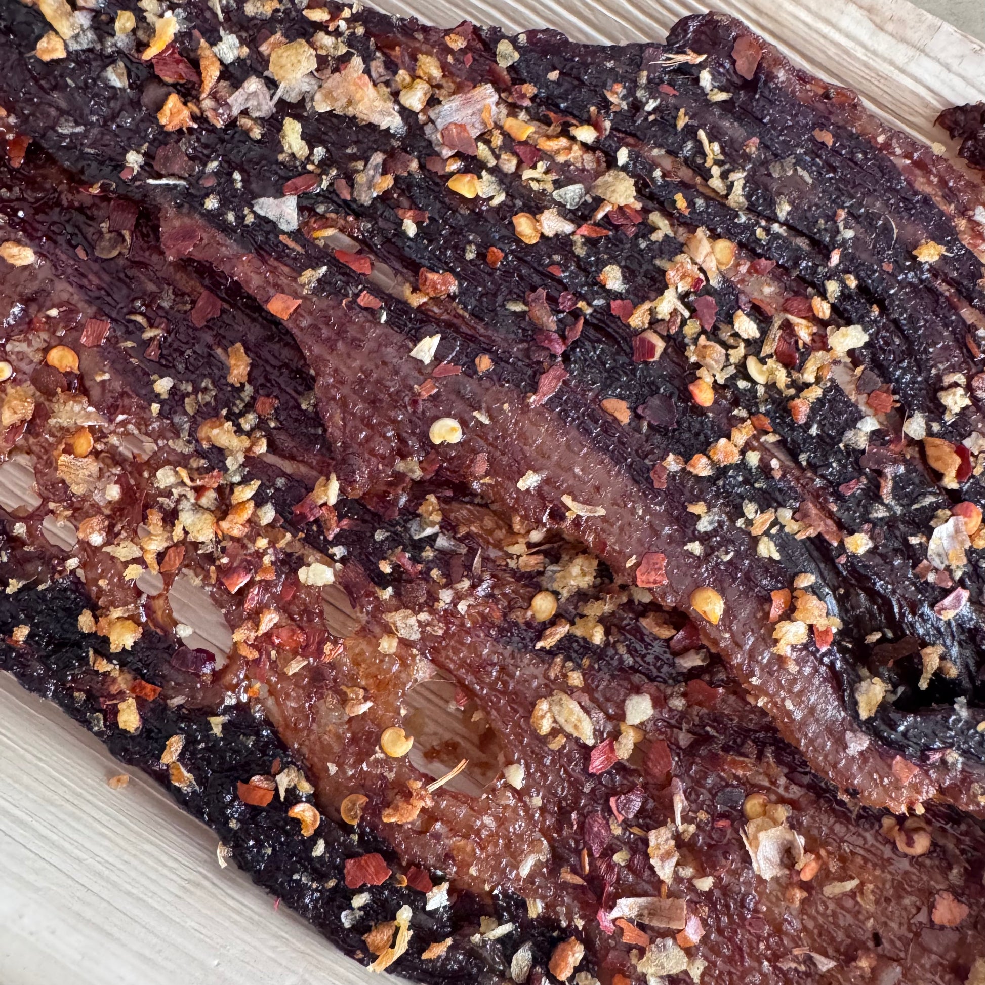 Beef jerky is a high-protein snack made from seasoned, dried beef, offering a chewy texture and bold flavor. Perfect for on-the-go energy or quick snacking.